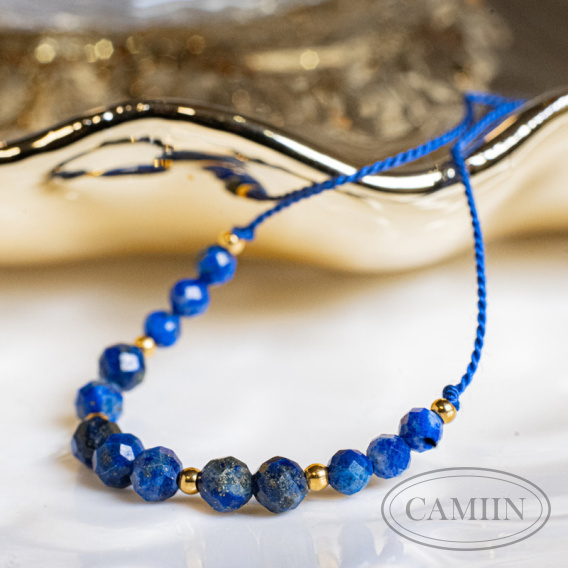 Bransoletka na nici jedwabnej z lapis lazuli.